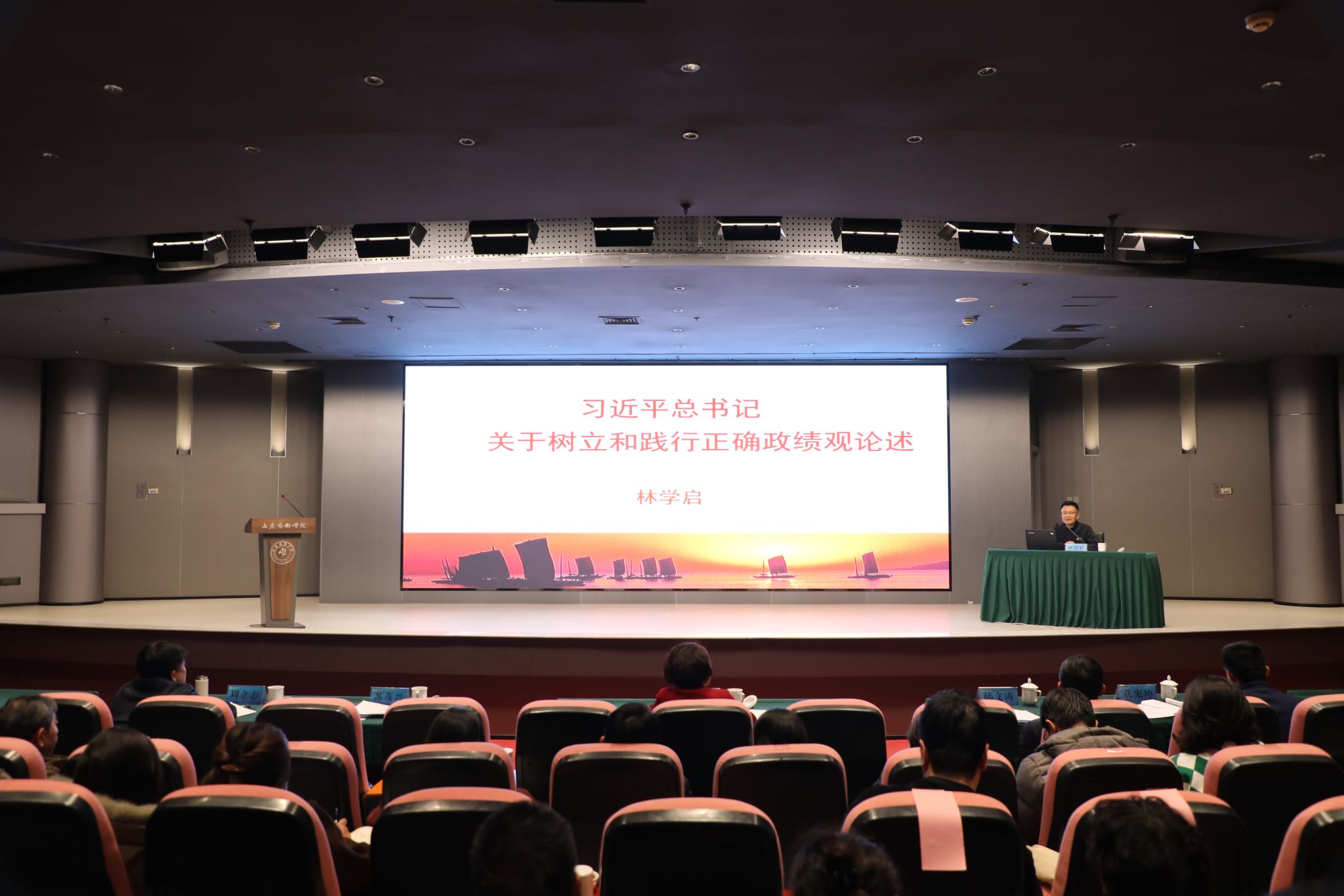 林学启以《习近平总书记关于树立和践行正确政绩观论述》为题,从树立和践行正确政绩观的主要内容、理论品格、实践要求三个方面进行详细讲解。报告主题鲜明、内涵深刻,兼具理论高度与思想深度,全面阐释了“政绩为谁而树、功勋为谁而立”的时代之问。