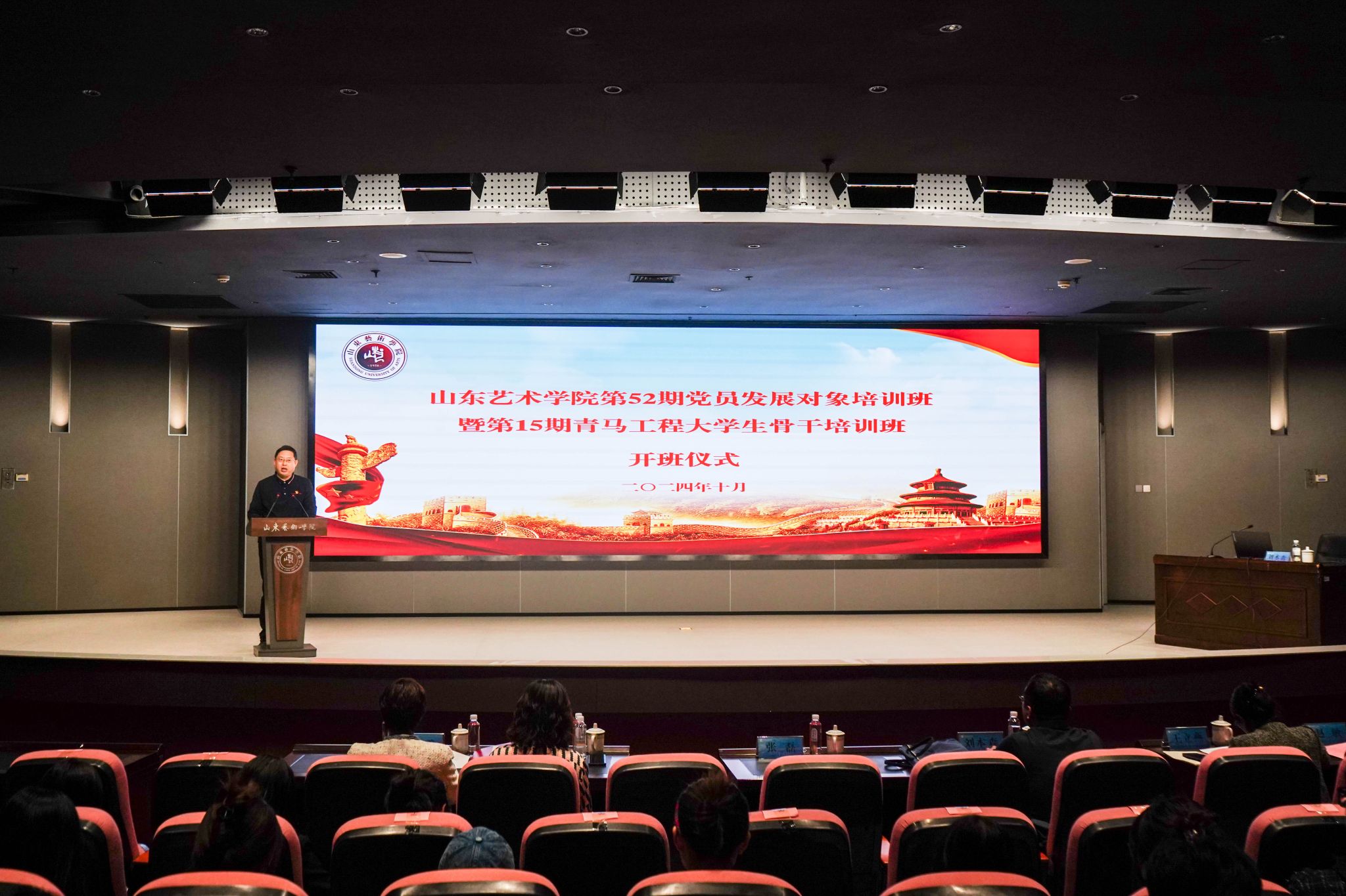 10月25日,学校第52期党员发展对象培训班暨第15期青马工程大学生骨干培训班开班式在长清校区图书馆报告厅举行。党委组织部、宣传部、团委相关负责人,各二级学院团总支书记、学生党支部书记、全体学员参加开班式。仪式由党委组织部副部长、正处级组织员张磊主持。