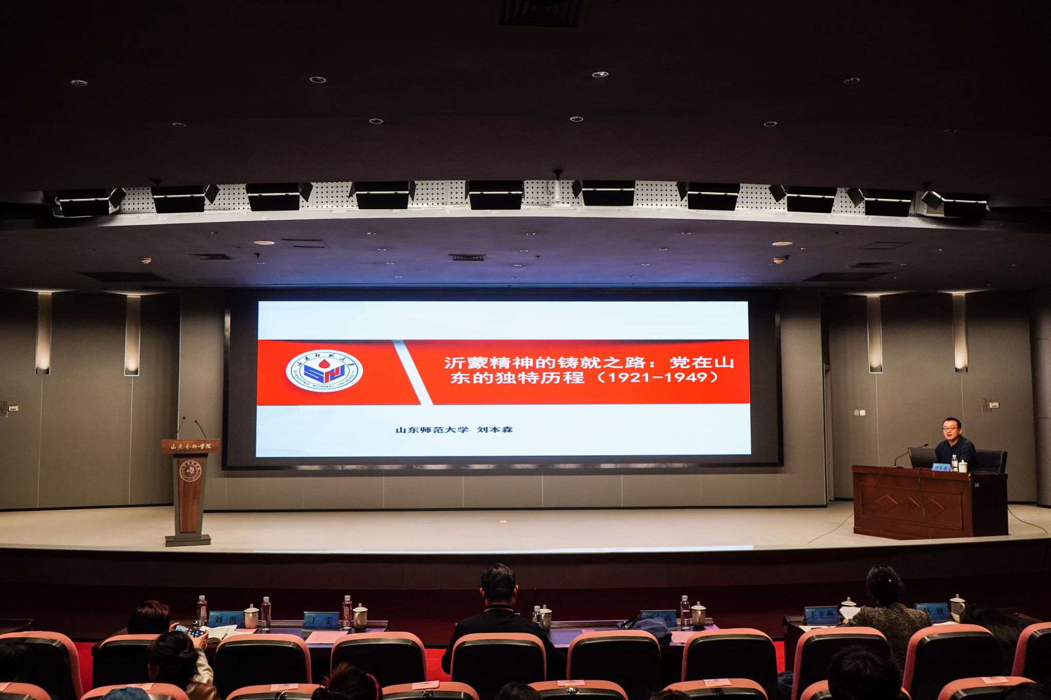 开班式后,山东高校“中国共产党人精神谱系”宣讲团成员,山东师范大学教授、博士生导师刘本森为全体党员发展对象、青马班学员讲授开班第一课。他以《沂蒙精神的铸就之路:党在山东的独特历程(1921-1949)》为题,从参与建党、艰辛找党,自力更生、建立武装,革命战场、中流砥柱,听从指挥、创新创造,水乳交融、生死与共五个方面,讲解了中国共产党在山东的独特历程,阐述了沂蒙精神的形成与淬炼之路,彰显了沂蒙精神“党群同心、军民情深,水乳交融、生死与共”的内涵特质。报告主题鲜明、重点突出,内容丰富、事例鲜活、分析透彻,具有很强的理论性、针对性和指导性,让学员更加深刻地了解了沂蒙精神蕴含的历史深意和时代价值。大家纷纷表示,在今后的学习、工作中,将继承和发扬优良革命传统,自觉讲好山东党史故事,传承弘扬沂蒙精神。