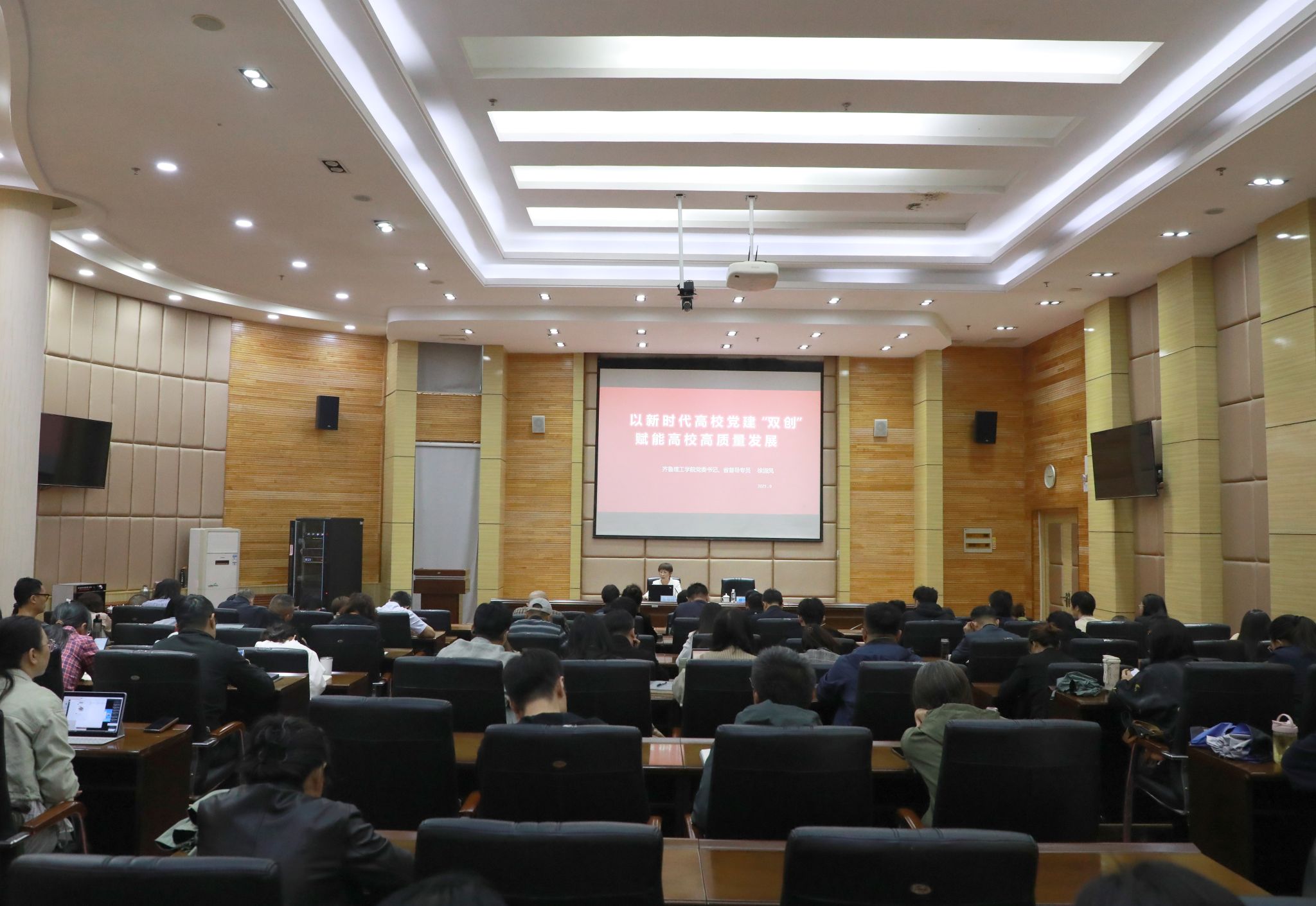为全面提升学校党建工作质量,切实加强学校党建示范创建和质量创优工作,以高质量党建引领高质量发展,9月23日,学校邀请齐鲁理工学院党委书记、山东省人民政府派驻齐鲁理工学院督导专员徐淑凤来校作《新时代高校党建“双创”赋能高校高质量发展》专题辅导,报告会由党委书记徐梅主持。